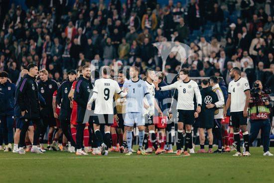2821170 Sinsheim, Alemanha, 10 de outubro de 2025. Comemoracao da selecao alema apos a vitoria com aperto de mao durante a partida das Eliminatorias Europeias da UEFA entre Alemanha e Luxemburgo na PreZero Arena, em Sinsheim, Alemanha. (Gabor Baumgarten / SPP) (Gabor Baumgarten / SPP)