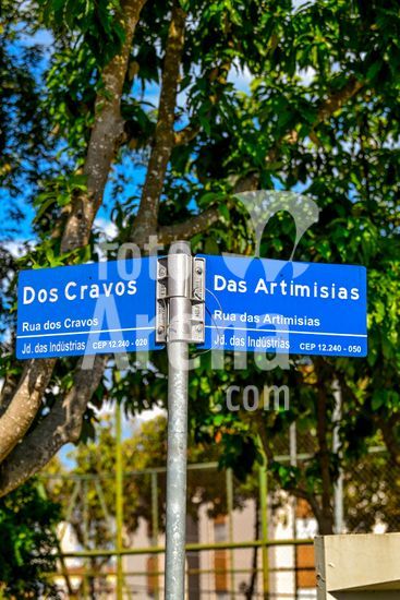 2846067 Diversas placas de ruas com nomes de plantas no bairro Jardim das Industrias Zona Oeste da cidade .