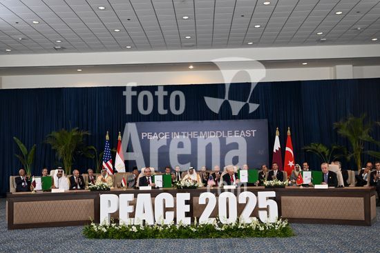 ny131025134912 From left: Qatar's Emir Sheikh Tamim bin Hamad Al Thani, President Abdel Fattah el-Sissi of Egypt, President Donald Trump and President Recep Tayyip Erdogan of Turkey sign a document during a peace summit in Sharm El-Sheikh, Egypt, on Monday, Oct. 13, 2025. The meeting in Egypt could expedite an end to the Gaza war, but regional powers must still resolve the thorny details that have stymied negotiations. (Kenny Holston/The New York Times/Fotoarena)