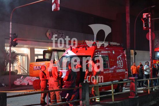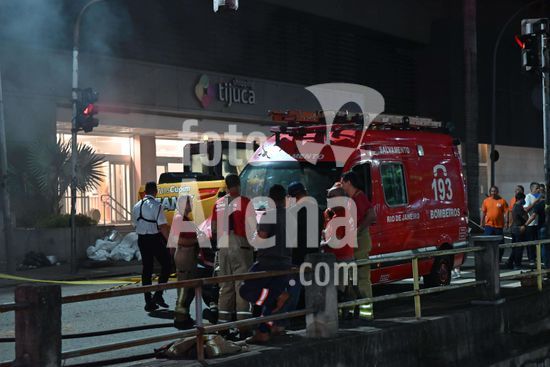 2864068 Ainda é visto muita fumaça preta saindo do Shopping Tijuca, após o incêndio, que aconteceu, na noite deste sábado (03), no Rio de Janeiro, RJ. Dutos foram colocados para tirar a fumaça de dentro. Do shopping