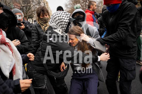 ny070326223611 A counterprotesters is helped by others after being pepper sprayed at a demonstration outside Gracie Mansion in Manhattan on Saturday, March 7, 2026. Six people were arrested after anti-Islamic protesters led by the right-wing activist Jake Lang clashed with counterprotesters near Gracie Mansion.(Vincent Alban/The New York Times/Fotoarena)
