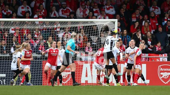 2893088 Borehamwood, Inglaterra, 22 de fevereiro de 2026: Olivia Smith (15 Arsenal) disputa uma bola aerea durante a partida da Copa da Inglaterra Feminina da Adobe entre Arsenal e Bristol City no Meadow Park em Borehamwood, Inglaterra. (Foto de Jay Patel/Sports Press Photo/SPP) (Jay Patel/Sports Press Photo/SPP)