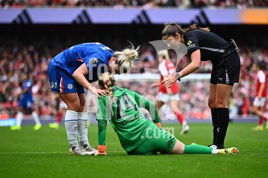 2840773 Hannah Hampton (1 Chelsea) em acao durante a partida da Barclays Women's Super League entre Arsenal e Chelsea no Emirates Stadium em 8 de novembro de 2025 em Londres, Inglaterra. (Yaroslav Dunka / SPP)