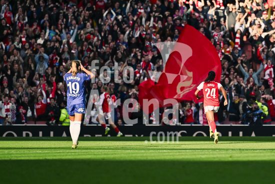 2840837 Victoria Pelova (21 Arsenal) e Emily Fox (2 Arsenal) agradecem aos torcedores com aplausos apos a partida da Barclays Women's Super League entre Arsenal e Chelsea no Emirates Stadium em 8 de novembro de 2025 em Londres, Inglaterra. (Yaroslav Dunka / SPP)