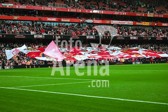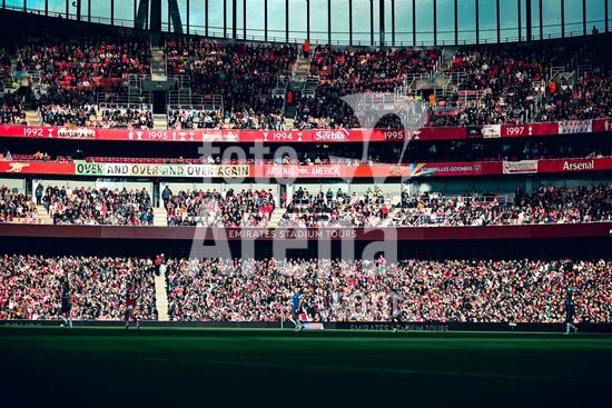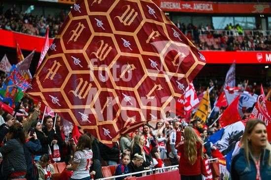 2840721 Torcedores do Arsenal exibem cachecois nas arquibancadas em demonstracao de apoio antes da partida da Barclays Women's Super League entre Arsenal e Chelsea, no Emirates Stadium, em 8 de novembro de 2025, em Londres, Inglaterra. (Yaroslav Dunka / SPP)