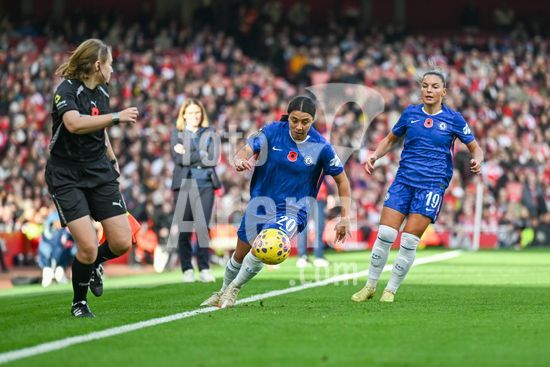 2840732 Sam Kerr (20 Chelsea) em acao durante a partida da Barclays Women's Super League entre Arsenal e Chelsea no Emirates Stadium em 8 de novembro de 2025 em Londres, Inglaterra. (Yaroslav Dunka / SPP)