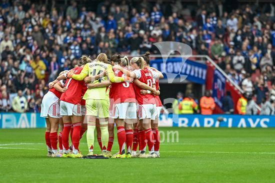 2840757 Jogadoras do Arsenal se reunem em circulo antes da partida da Barclays Women's Super League entre Arsenal e Chelsea no Emirates Stadium, em 8 de novembro de 2025, em Londres, Inglaterra. (Yaroslav Dunka / SPP)