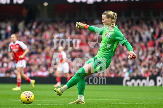 2840707 Hannah Hampton (1 Chelsea) em acao durante a partida da Barclays Women's Super League entre Arsenal e Chelsea no Emirates Stadium em 8 de novembro de 2025 em Londres, Inglaterra. (Yaroslav Dunka / SPP)