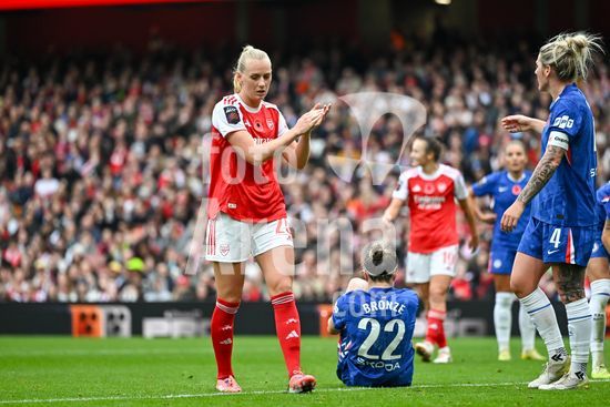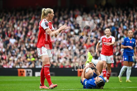 2840709 Melanie Leupolz (8 Chelsea) permanece no gramado apos uma dividida durante a partida da Barclays Women's Super League entre Arsenal e Chelsea no Emirates Stadium em 8 de novembro de 2025 em Londres, Inglaterra. (Yaroslav Dunka / SPP)