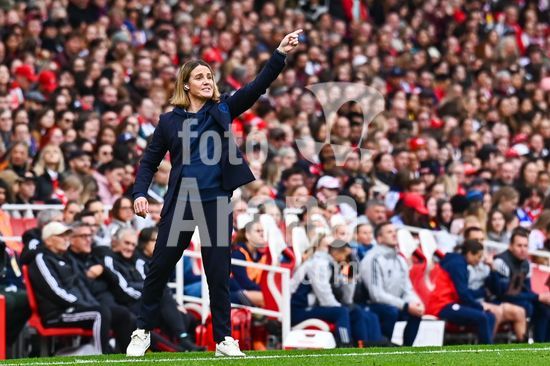 2840843 A treinadora da equipe feminina do Arsenal, Renee Slegers, agradece aos torcedores com aplausos apos a partida da Barclays Women's Super League entre Arsenal e Chelsea no Emirates Stadium, em 8 de novembro de 2025, em Londres, Inglaterra. (Yaroslav Dunka / SPP)