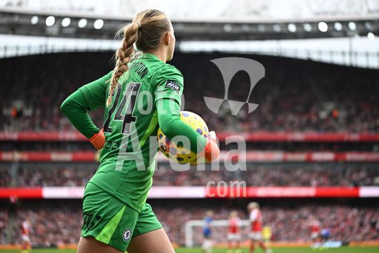 2840768 Hannah Hampton (1 Chelsea) em acao durante a partida da Barclays Women's Super League entre Arsenal e Chelsea no Emirates Stadium em 8 de novembro de 2025 em Londres, Inglaterra. (Yaroslav Dunka / SPP)