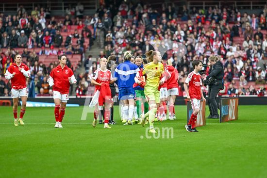 2840777 Equipe do Arsenal pronta para o jogo durante a partida da Barclays Women's Super League entre Arsenal e Chelsea no Emirates Stadium em 8 de novembro de 2025 em Londres, Inglaterra. (Yaroslav Dunka / SPP)