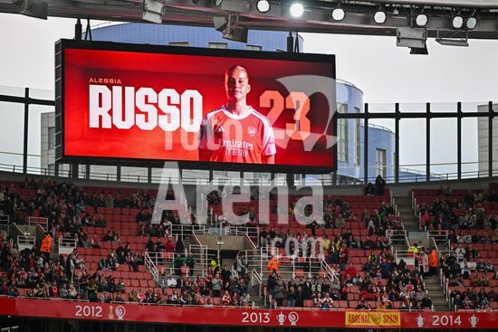2840778 Alessia Russo (23 Arsenal) no telao antes da partida da Barclays Women's Super League entre Arsenal e Chelsea no Emirates Stadium em 8 de novembro de 2025 em Londres, Inglaterra. (Yaroslav Dunka / SPP)