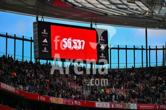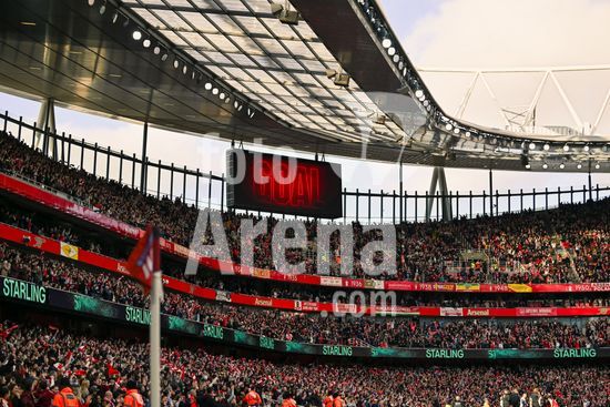 2840842 Publico presente no telao: 56.537 torcedores no Emirates Stadium durante a partida da Barclays Women's Super League entre Arsenal e Chelsea, em 8 de novembro de 2025, em Londres, Inglaterra. (Yaroslav Dunka / SPP)