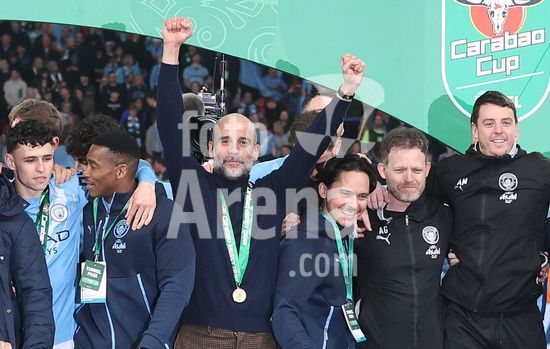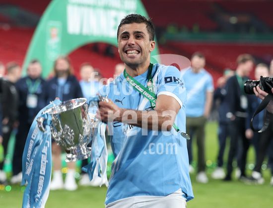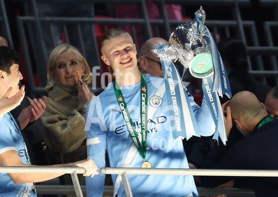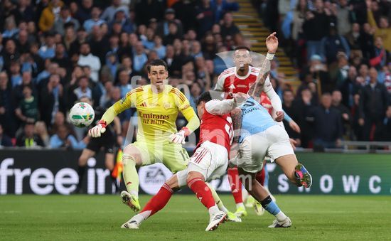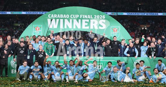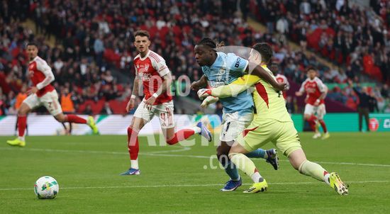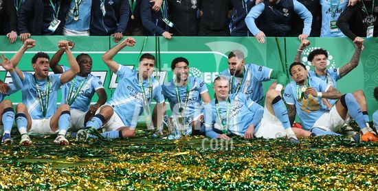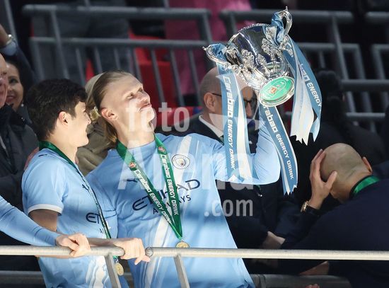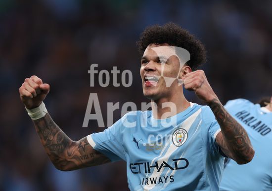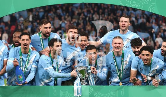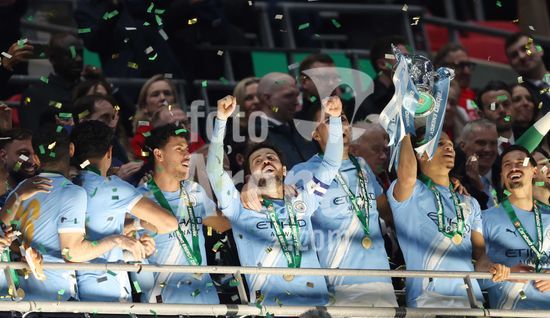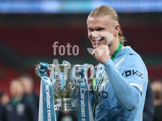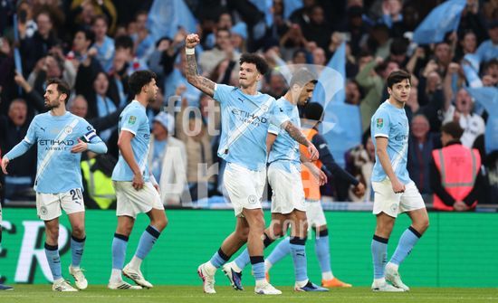 LONDRES, INGLATERRA, 22 DE MARCO: Gol 1-0, comemoracao de Nico O'Reilly, do Manchester City, apos marcar o gol que colocou o Manchester City em vantagem por 1 a 0 durante a partida entre Arsenal FC e Manchester City FC na final da Copa da Liga Inglesa, no Estadio de Wembley, em Londres, Inglaterra, em 22 de marco. (Daniel Weir/Sports Press Photo/SPP)