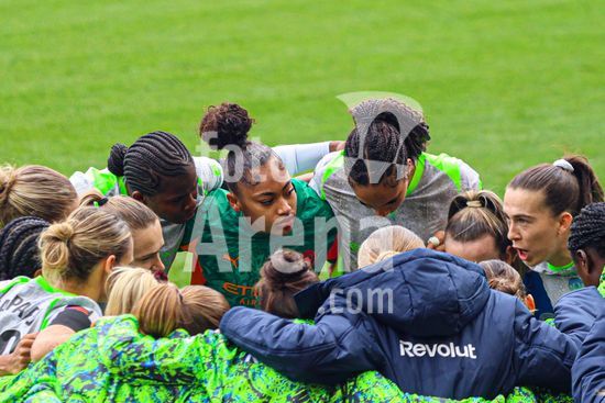 2905396 BIRMINGHAM, INGLATERRA - 15 de marco: Equipe do Manchester City reunida durante a partida da Barclays Women's Super League entre Aston Villa e Manchester City no Villa Park, em 15 de marco de 2026, em Birmingham, Inglaterra. (Natalie Mincher/SPP)