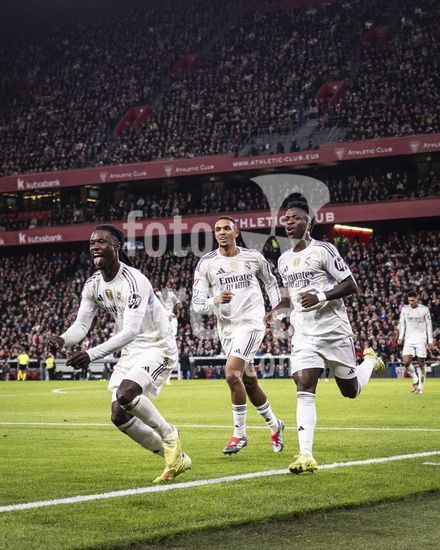 2852601 Eduardo Camavinga, do Real Madrid, comemora apos marcar o segundo gol da equipe durante a partida da La Liga entre Athletic Club e Real Madrid, no estadio San Mames, em Bilbao, Espanha. (Ricardo Nogueira/SPP)