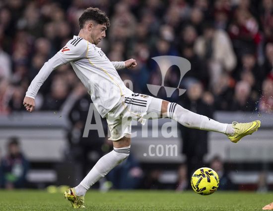 2852591 Federico Valverde, do Real Madrid, passa a bola durante a partida da La Liga entre Athletic Club e Real Madrid, no estadio San Mames, em Bilbao, Espanha. (Ricardo Nogueira/SPP)