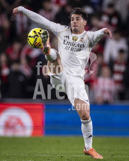 2852587 Brahim Diaz, do Real Madrid, controla a bola durante a partida da La Liga entre Athletic Club e Real Madrid, no estadio San Mames, em Bilbao, Espanha. (Ricardo Nogueira/SPP)