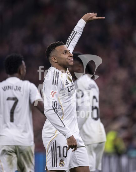 2852590 Kylian Mbappe, do Real Madrid, comemora apos marcar um gol durante a partida da La Liga entre Athletic Club e Real Madrid, no estadio San Mames, em Bilbao, Espanha. (Ricardo Nogueira/SPP)