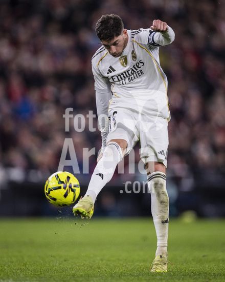 2852585 Federico Valverde, do Real Madrid, em acao durante a partida da La Liga entre Athletic Club e Real Madrid, no estadio San Mames, em Bilbao, Espanha. (Ricardo Nogueira/SPP)