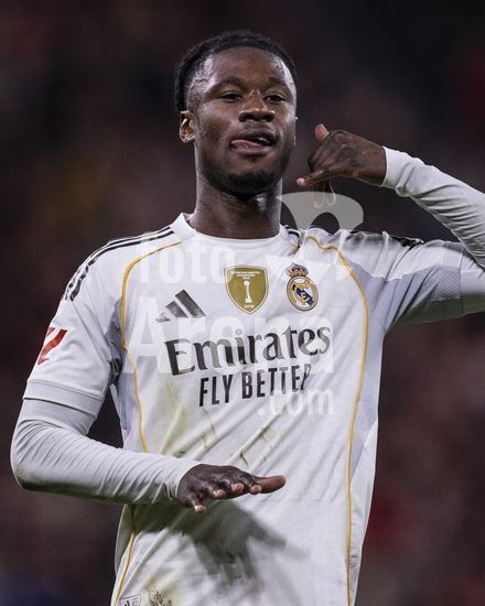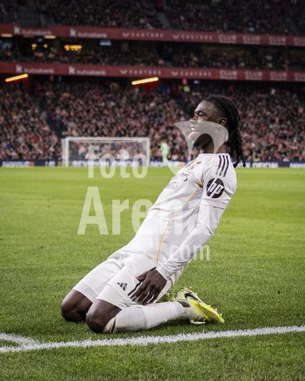 2852596 Eduardo Camavinga, do Real Madrid, comemora apos marcar o segundo gol da equipe durante a partida da La Liga entre Athletic Club e Real Madrid, no estadio San Mames, em Bilbao, Espanha. (Ricardo Nogueira/SPP)