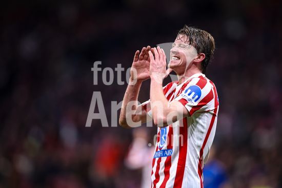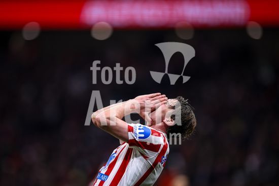 2850429 Giuliano Simeone lamenta oportunidade perdida durante Atletico de Madrid x Real Oviedo realizada no Estadio Riyadh Air Metropolitano em Madrid, Ma.