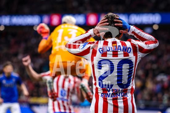 2850430 Giuliano Simeone lamenta oportunidade perdida durante Atletico de Madrid x Real Oviedo realizada no Estadio Riyadh Air Metropolitano em Madrid, Ma.