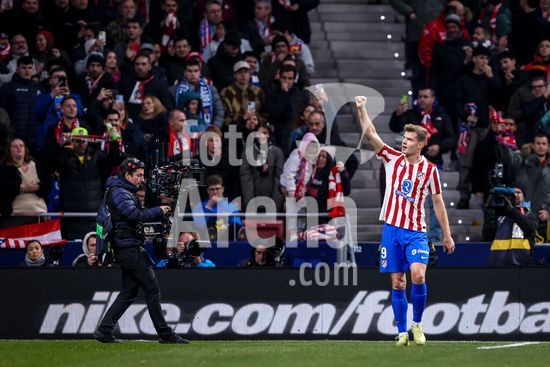 2850447 Alexander Sorloth comemora seu primeiro gol durante Atletico de Madrid x Real Oviedo realizada no Estadio Riyadh Air Metropolitano em Madrid, Ma.
