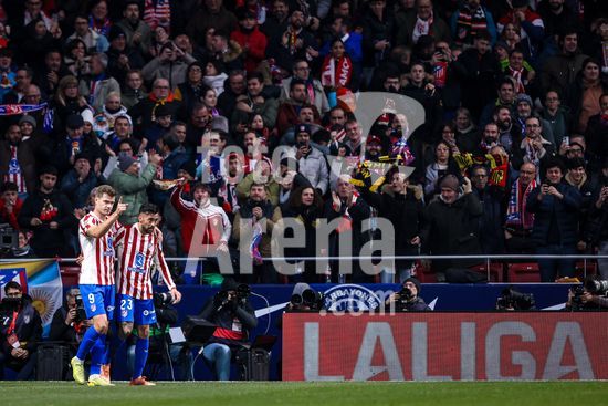 2850402 Julián Álvarez e José María Giménez durante Atletico de Madrid x Real Oviedo realizada no Estadio Riyadh Air Metropolitano em Madrid, Ma.