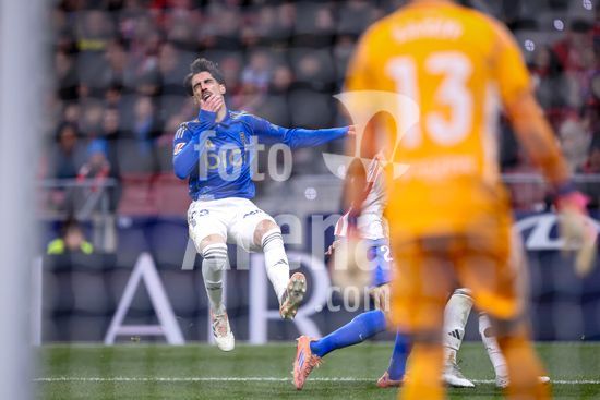 2850453 Federico Viñas lesionado durante Atletico de Madrid x Real Oviedo realizada no Estadio Riyadh Air Metropolitano em Madrid, Ma.