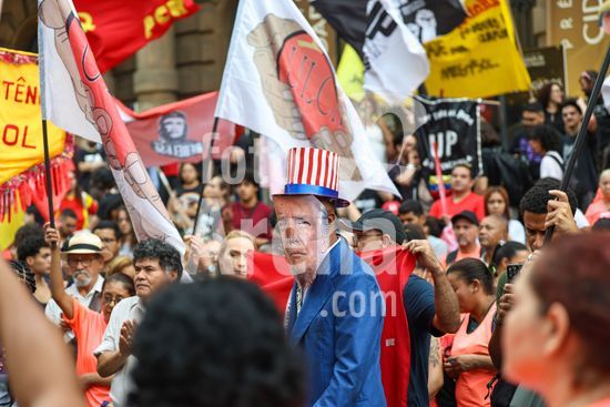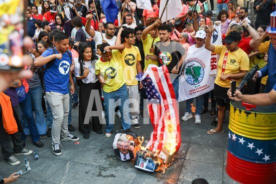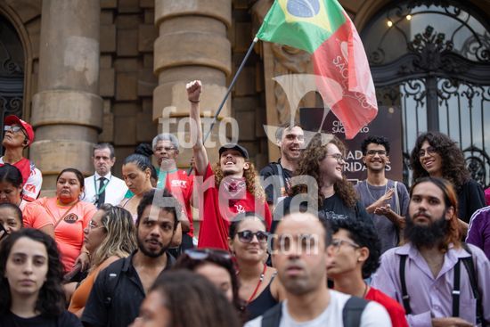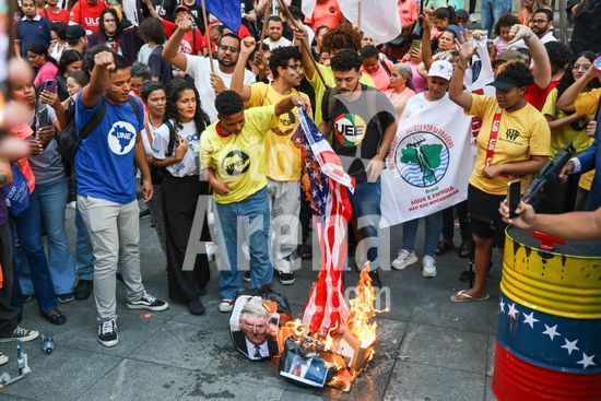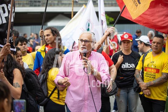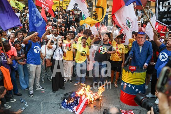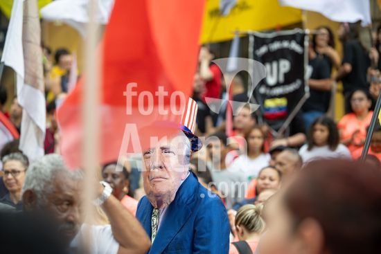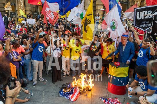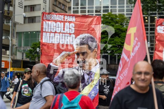 Integrantes do PT, do PSOL e de movimentos sociais convocaram para esta quarta-feira (28) uma manifestação em frente ao Theatro Municipal, no centro de São Paulo. O ato, iniciado por volta das 17h, reuniu manifestantes com bandeiras e faixas que pediam a libertação do presidente venezuelano Nicolás Maduro. Durante a mobilização, também foram entoadas palavras de ordem em apoio à Venezuela e contra as ações do presidente dos Estados Unidos, Donald Trump.
