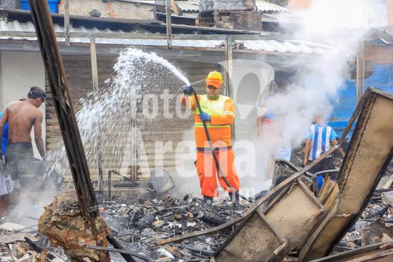 2862329 Um incêndio de grandes proporções na noite de domingo, destruiu 50 barracas no mercado da produção, na manhã desta segunda (22), o local demonstrava grande destruição, o corpo de bombeiros trabalhou boa parte da noite até as 3 da madrugada. Grande movimentação de pessoas recolhendo materiais como madeiras, aluminios e produtos das lojas destruidas com o incendio.
