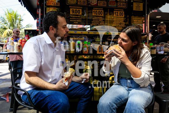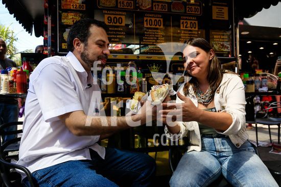 2922471 O Ministro-Chefe da Secretaria-Geral da Presidência da República, Guilherme Boulos participou de um ato contra o fim da escala 6x1 na manhã deste sábado (11), no famoso calçadão de Osasco na Grande São Paulo. A proposta é reduzir a jornada de trabalho sem diminuir o salário do trabalhador. Na foto Guilherme Boulos e Natalia Szermeta Boulos, comem cachorro quente no Calçadão de Osasco.