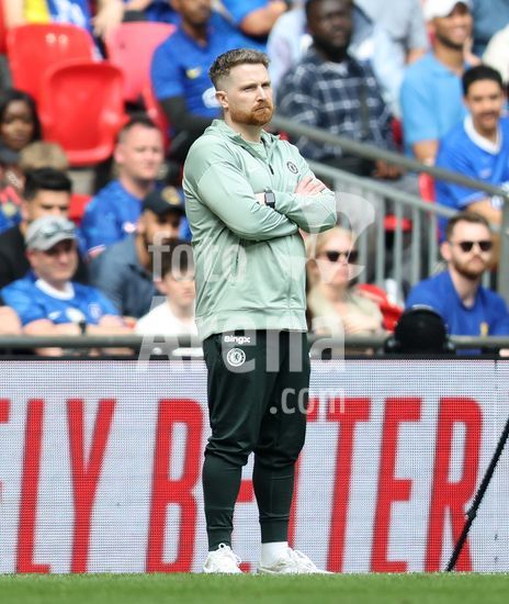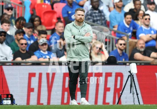2932514 LONDRES, INGLATERRA, 26 DE ABRIL: Calum McFarlane, treinador do Chelsea, durante a partida entre Chelsea FC e Leeds United FC pela semifinal da Copa da Inglaterra (Emirates FA Cup), no Estadio de Wembley, em Londres, Inglaterra, em 26 de abril. (Foto de Daniel Weir) (Daniel Weir/Sports Press Photo / SPP)