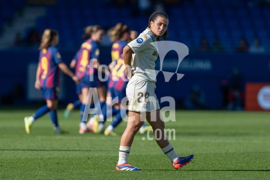 2841553 A reacao de Paula Novo (26 Deportivo) apos o Barcelona marcar o primeiro gol (1-0) no jogo da Liga F Moeve entre FC Barcelona Femeni x FC Deportivo Abanca no Estadi Johan Cryuff em Barcelona, Espanha. (Carla Feijo/SPP) (Carla Feijoo / SPP)