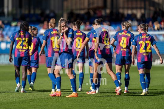 2841535 Equipe do Barcelona aplaudindo o publico antes do jogo da Liga F Moeve entre FC Barcelona Femeni x FC Deportivo Abanca no Estadi Johan Cryuff em Barcelona, Espanha. (Carla Feijo/SPP) (Carla Feijoo / SPP)
