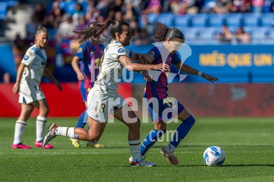 2841567 Duelo entre Vicky Lopez (19 Barcelona) e Raquel Garcia (18 Deportivo) durante o jogo da Liga F Moeve entre FC Barcelona Femeni x FC Deportivo Abanca no Estadi Johan Cryuff em Barcelona, Espanha. (Carla Feijo/SPP) (Carla Feijoo / SPP)