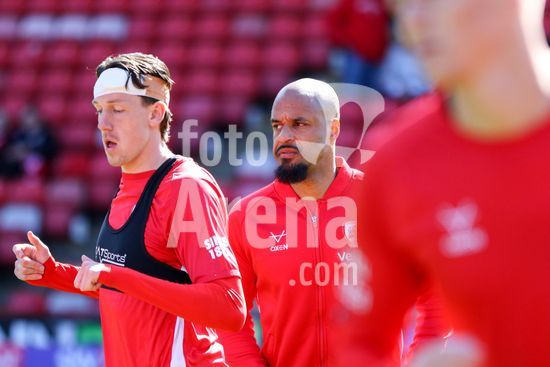 2920243 BARNSLEY, INGLATERRA - 6 DE ABRIL: Reyes Cleary e Vimal Yoganathan, do Barnsley, antes da partida da Sky Bet League One entre Barnsley e Plymouth Argyle, no Oakwell, em 6 de abril de 2026, em Barnsley, Inglaterra. (Sean Chandler / SPP)