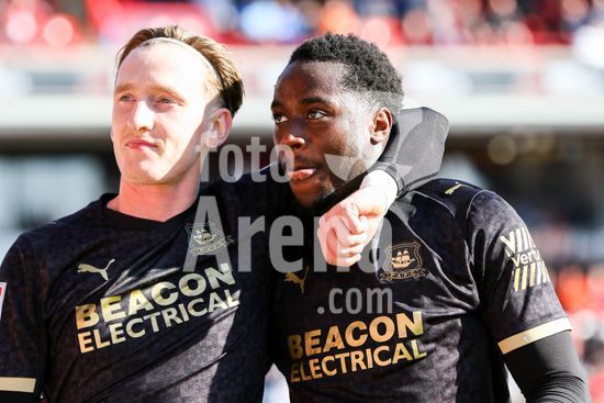 2920240 BARNSLEY, INGLATERRA - 6 DE ABRIL: Owen Oseni, do Plymouth Argyle, comemora seu gol durante a partida da Sky Bet League One entre Barnsley e Plymouth Argyle no Oakwell, em 6 de abril de 2026, em Barnsley, Inglaterra. (Sean Chandler / SPP)