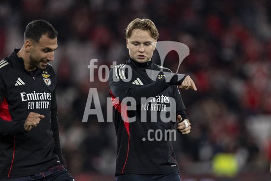 2892366 Vangelis Pavlidis 14 do SL Benfica e Andreas Schjelderup 21 do SL Benfica observam durante o jogo da Liga Portugal Betclic entre SL Benfica x AFS no Estadio do SL Benfica no dia 21 de fevereiro de 2026 (Foto de Joao Bravo/Sports Press Photo) (Joao Bravo/Sports Press Photo / SPP)