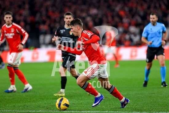 2874391 Estadio da Luz Gianluca Prestianni do SL Benfica luta pela bola durante o jogo da Liga Portugal Betclic entre SL Benfica e Estrela da Amadora no Estadio da Luz, em Lisboa, a 25 de janeiro de 2026. Liga Portugal Betclic - SL Benfica vs Estrela Amadora (Valter Gouveia/SPP)