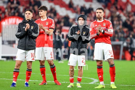 2874407 Estadio da Luz Nicolas Otamendi do SL Benfica, Gianluca Prestianni do SL Benfica, Sudakov do SL Benfica agradecem o apoio durante o jogo da Liga Portugal Betclic entre SL Benfica e Estrela da Amadora no Estadio da Luz em Lisboa no dia 25 de janeiro de 2026. Liga Portugal Betclic - SL Benfica vs Estrela Amadora (Valter Gouveia/SPP)
