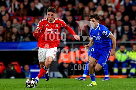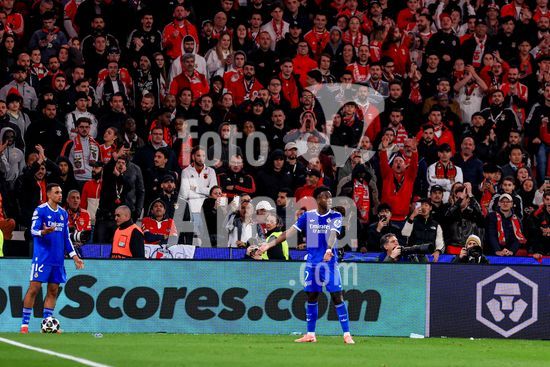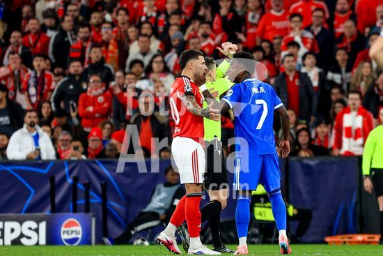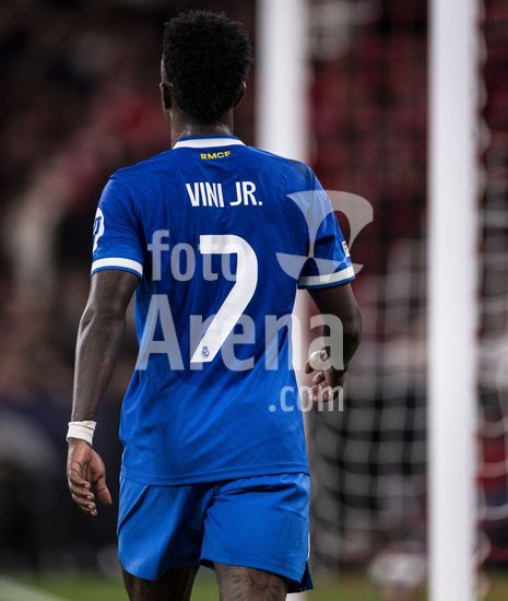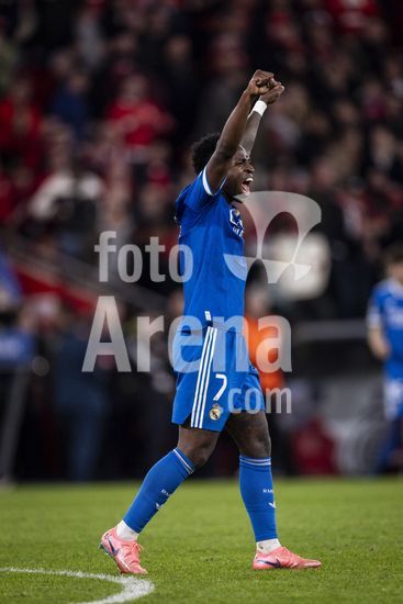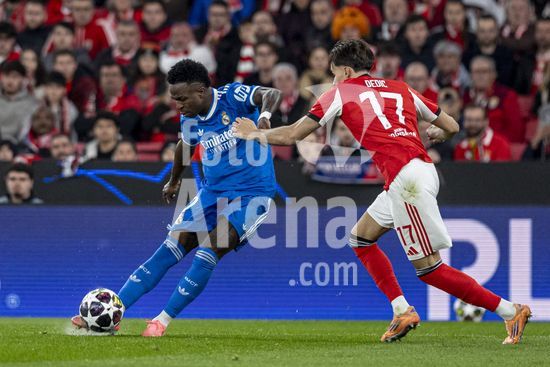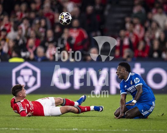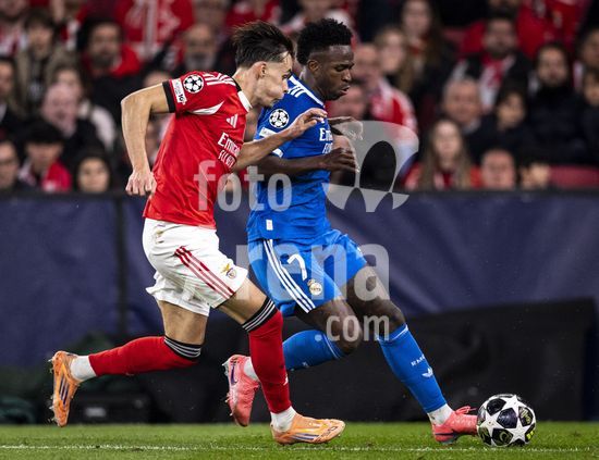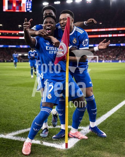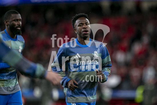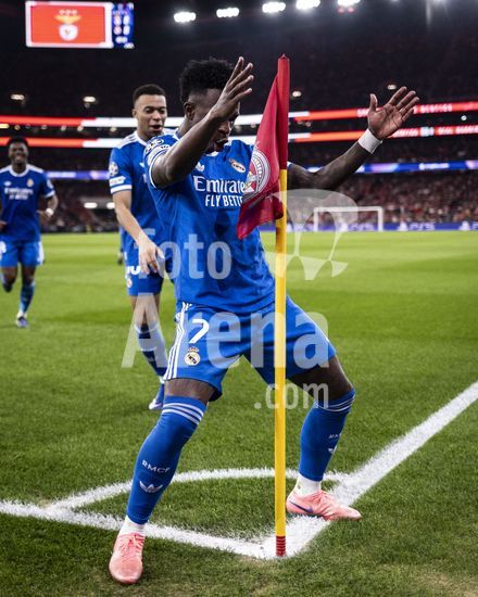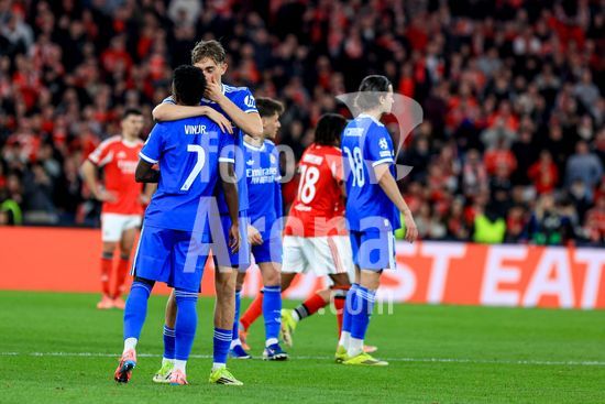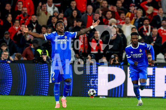 LISBOA, PORTUGAL - 17 DE FEVEREIRO: Vinicius Junior do Real Madrid comemora depois de marcar o primeiro gol da equipe durante a primeira mao do play-off da Liga dos Campeoes da UEFA 2025/26 entre SL Benfica e Real Madrid CF, no Estadio do SL Benfica, em 17 de fevereiro de 2026, em Lisboa, Portugal. (Foto de Ricardo Nogueira/Sports Press Photo/) (Ricardo Nogueira/Sports Press Ph / SPP)