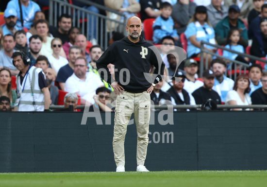 2931500 LONDRES, INGLATERRA, 25 DE ABRIL: Josep Guardiola, tecnico do Manchester City, demonstra preocupacao e frustracao durante a partida entre Manchester City FC e Southampton FC, valida pela semifinal da Copa da Inglaterra (Emirates FA Cup), no Estadio de Wembley, em Londres, Inglaterra, em 25 de abril. (Foto de Daniel Weir) (Daniel Weir/Sports Press Photo / SPP)