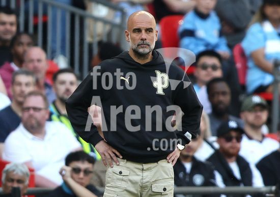 2931501 LONDRES, INGLATERRA, 25 DE ABRIL: Josep Guardiola, tecnico do Manchester City, demonstra preocupacao e frustracao durante a partida entre Manchester City FC e Southampton FC, valida pela semifinal da Copa da Inglaterra (Emirates FA Cup), no Estadio de Wembley, em Londres, Inglaterra, em 25 de abril. (Foto de Daniel Weir) (Daniel Weir/Sports Press Photo / SPP)