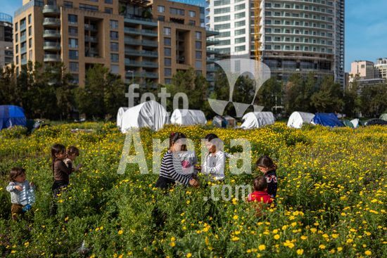 ny160426112212 Lebanese internally displaced people play with flowers early in the morning in Beirut, April 16, 2026. Since early March, more than 2,000 Lebanese have been killed and more than two million have been displaced. (Diego Ibarra Sánchez/The New York Times/Fotoarena)