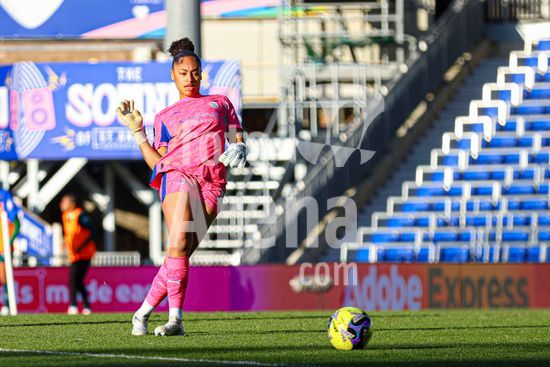 2920404 BIRMINGHAM, INGLATERRA - 6 de abril: A goleira Khiara Keating, do Manchester City, passa a bola durante a partida da Copa da Inglaterra Feminina da Adobe entre Birmingham City e Manchester City, no Estadio St. Andrews, em Birmingham, Inglaterra, em 6 de abril. (Natalie Mincher/SPP)