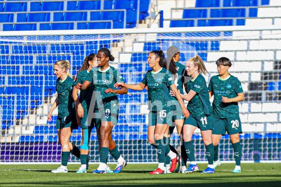 2920416 BIRMINGHAM, INGLATERRA - 6 de abril: Jogadoras comemoram apos Khadija Bunny Shaw, do Manchester City, marcar durante a partida da Copa da Inglaterra Feminina da Adobe entre Birmingham City e Manchester City, no Estadio St. Andrews, em Birmingham, Inglaterra, em 6 de abril. (Natalie Mincher/SPP)