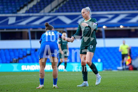 2920430 BIRMINGHAM, INGLATERRA - 6 de abril: Rebecca McKenna, do Birmingham City, e Alex Greenwood, do Manchester City, apertam as maos apos o apito final da partida da Copa da Inglaterra Feminina da Adobe entre Birmingham City e Manchester City, no Estadio St. Andrews, em Birmingham, Inglaterra, em 6 de abril. (Natalie Mincher/SPP)